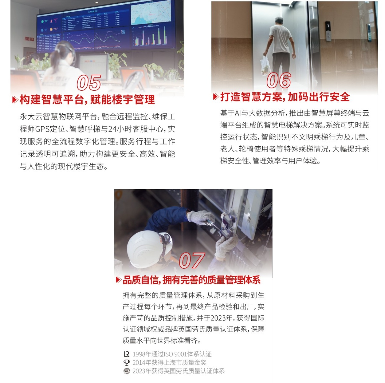 回溯歷程,安全技術的迭代升級是守護的核心力量——從基礎防護到智能監控,從人工巡檢到預測預警,持續投入與創新驅動著安全防線不斷筑牢。每一次技術突破,都源于對隱患零容忍的追求。未來,永大將繼續以技術為矛、以規范為盾,為乘客打造安全、舒適、便捷的乘梯環境,承載萬千家庭的安寧幸福,守護生活的高效便捷。